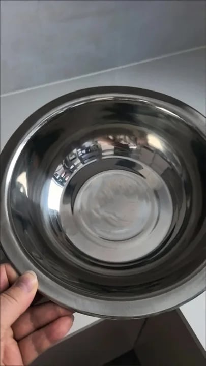 A deep stainless steel bowl to collect food or water